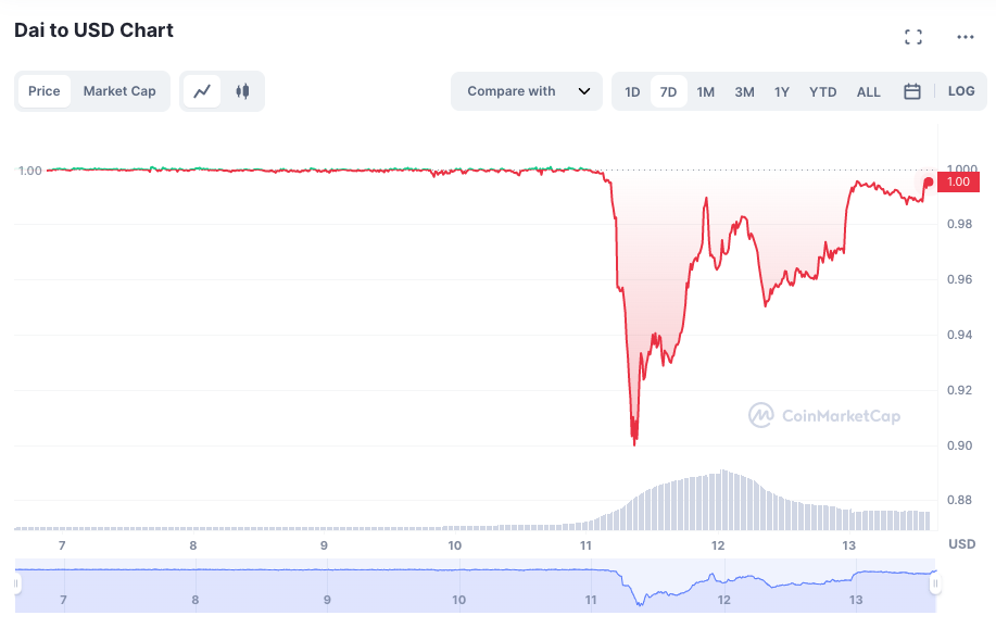 Le DAI depeg également suite à la nouvelle.