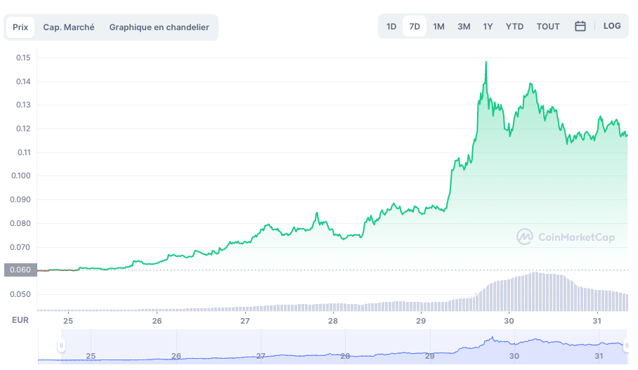 Évolution de DOGE sur les 7 derniers jours @CoinmarketCap (DOGE/EUR)