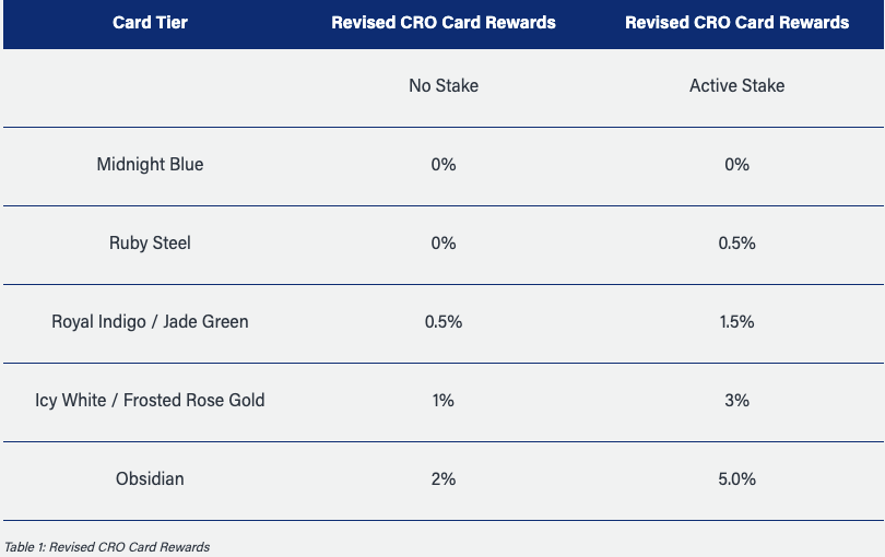 Afin d’assurer la durabilité à long terme, nous introduisons un certain nombre de changements dans le programme de récompenses de la carte CRO, à compter du 1er juin 2022 à 00 h 00 UTC (« Date d’entrée en vigueur »).