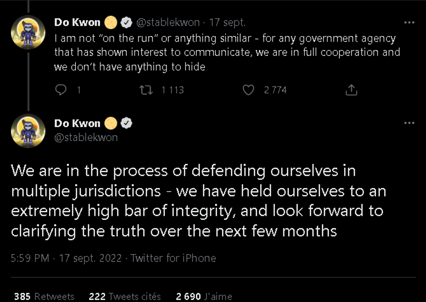 L’homme derrière cet effondrement, Do Kwon, le cofondateur de Terra Luna et Terraform Labs, a fait l’objet d’un mandat d’arrêt émis par les procureurs sud-coréens la semaine passée. Ils avaient également demandé que son passeport soit révoqué.