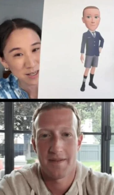 Lors de l’annonce de présentation de l’Avatars Store, durant un Instagram Live, Eva Chen, vice-présidente des partenariats mode chez Meta, présente au côté de Mark Zuckerberg a présenté l’Avatar de ce dernier habillé d’une tenue signée Thom Browne, ci-dessous, qu’elle décrit comme étant dans un “esprit d’écolier britannique traditionnel”.