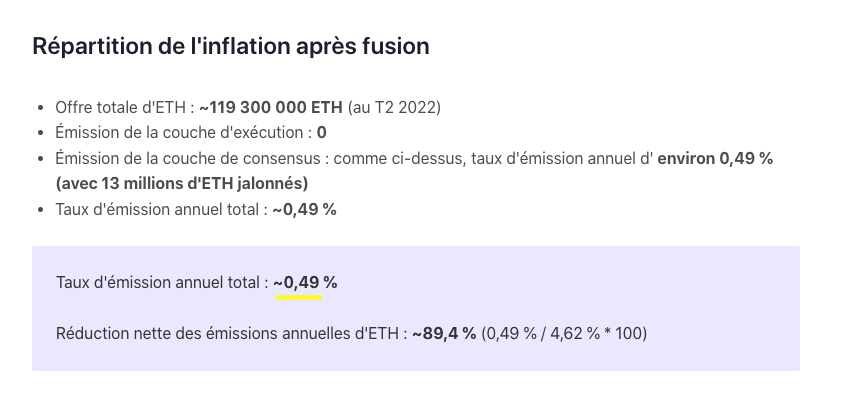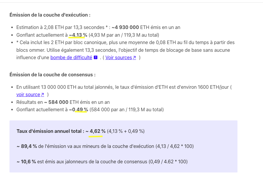 Avant la fusion l’émission de nouveaux ETH provoquait une inflation de 3,2% :